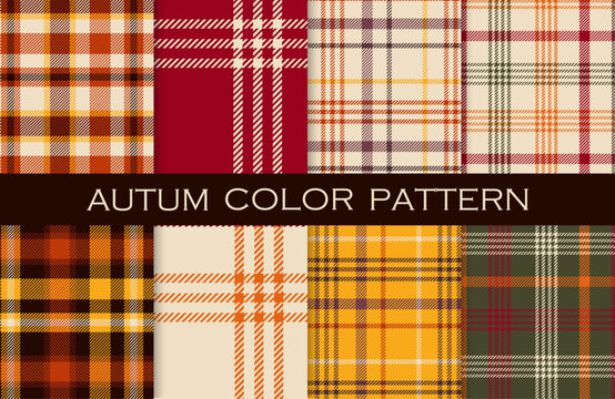 秋色カラーのチェック柄シームレスパターンセット 8種類