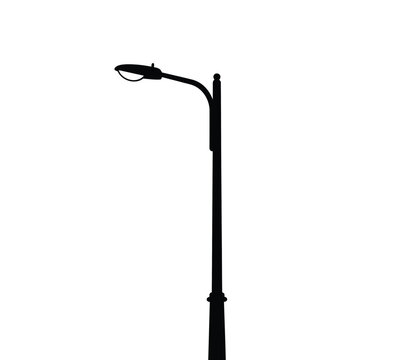 Street light silhouette. This image shows a street light silhouette, also known as a lamp post or street lamp, against a white background. Vector clipart illustration design.