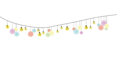 Lampion Girlande mit Glühbirnen in Pastellfarben