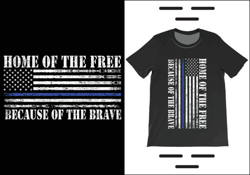 Land of the free Because of the Brave 4th of July typography T shirt Design