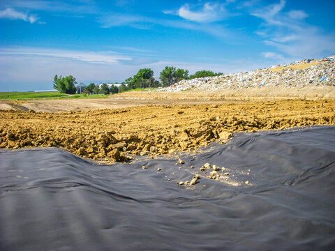 Installation of HDPE liner being covered with sand at a landfill expansion project