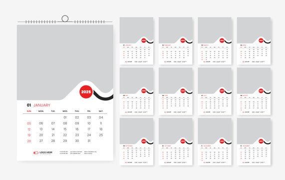 Calendar 2021, 2022, 2023, 2024, 2025, 2026, 2027, 2020 years. Vector illustration. Simple template.