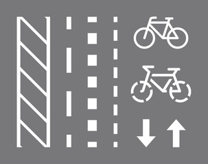 Bicycle route sign, road markings and arrows pointing direction. Vector illustration