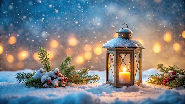 Decorative metal lantern filled with Christmas greenery, ornament, festive
