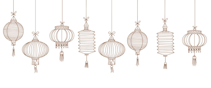 Chinese New Year PNG. Vector Chinese lantern on transparent background. Chinese New Year red light festival.
