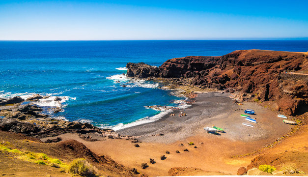 beautiful view on El Golfo Beach in Lanzarote, Canary Islands, Spain