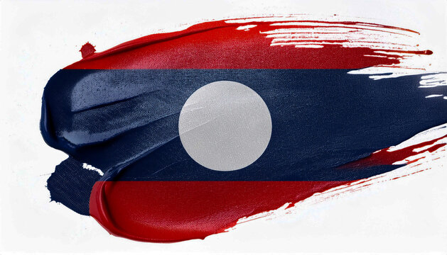 National flag of Laos with red, blue, and white colors displayed prominently