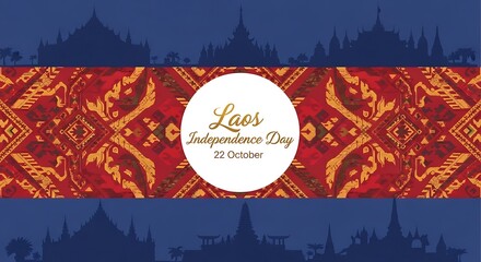 Laos Independence Day Celebration: Traditional Pattern and Silhouette Temples