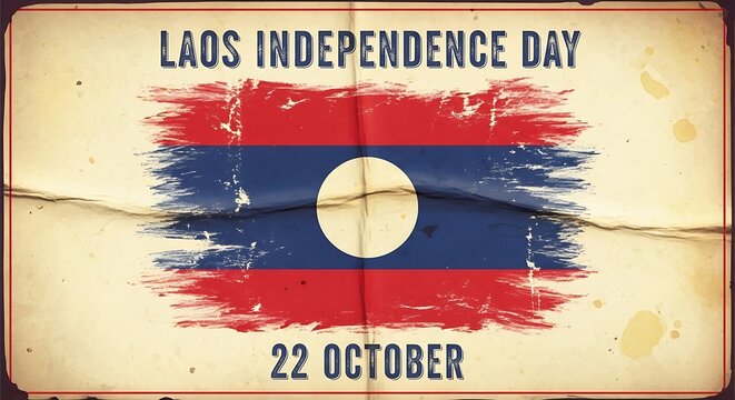 Laos Independence Day: Vintage Flag Design on Aged Paper, October 22nd.