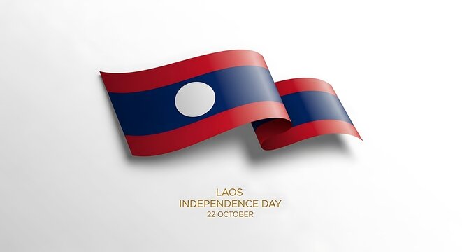 Laos Independence Day: Waving Flag on White Background, October 22nd Celebration