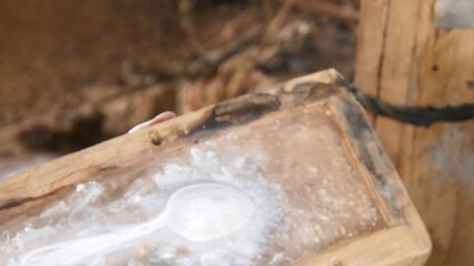 Ban Napia, Laos - 15th january, 2024: laotian people make aluminum spoons from Vietnam war era munition remains or UXO. Collect UXO , melt down in kiln and fashion it to spoons household items