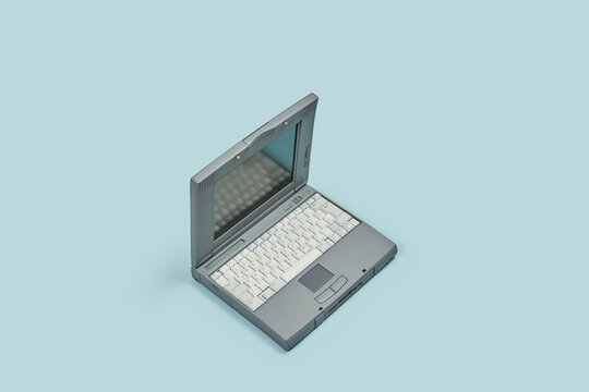 Realistic laptop with empty screen animation isolated on transparent background. Alpha channel template.