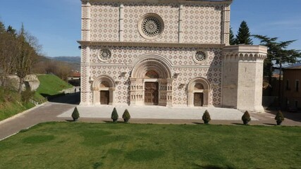 Beautiful Romanesque portal of the basilica Santa Maria di Collemaggio in L'Aquila, Italy