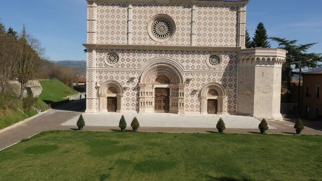 Aerial Drone Footage View of church in Aquila city in Italy // no video editing