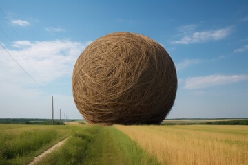 the world's largest ball of twine, towering above the landscape, created with generative ai