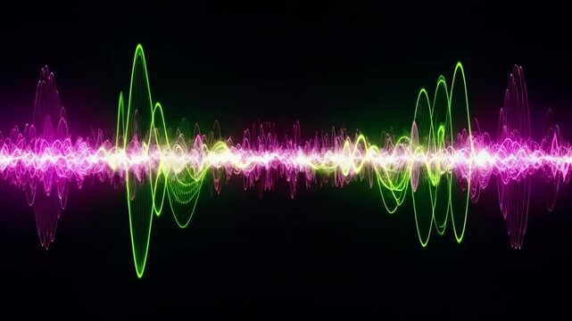Vibrant sound waves dancing in harmony at the neon music festival late at night