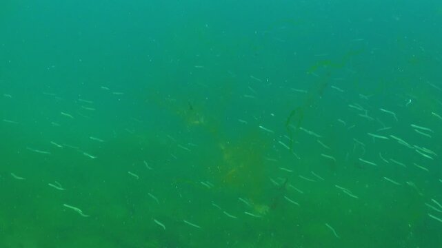 Small sandeel fishes in sea water.