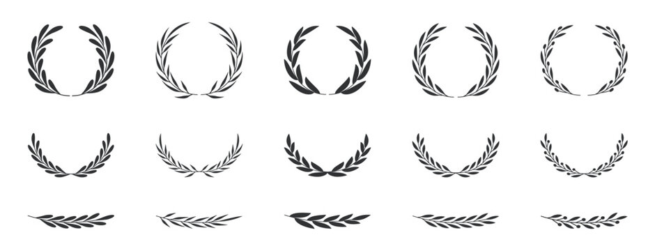 Set black silhouette circular laurel foliate, wreaths award, achievement, heraldry, nobility. award laurel wreaths and branches vector illustration.