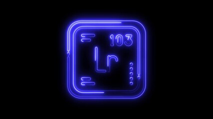 Lawrencium - periodic table element symbol hologram, chemical element Periodic Table, atomic weight element number ,glowing on black background in 4K.