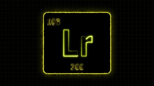 lawrencium chemical element periodic table on background. animated periodic table.Shows name, atomic weight and element number.