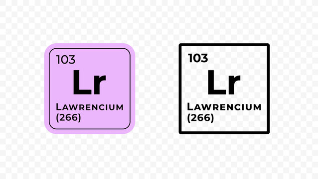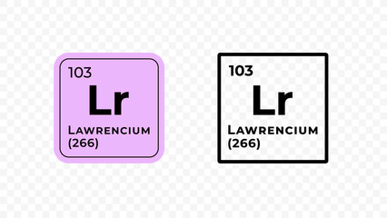 Lawrencium, Lr, chemical periodic table element icon. The chemical element of the periodic table. Icon with molar mass and atomic number for lab, science or chemistry class.