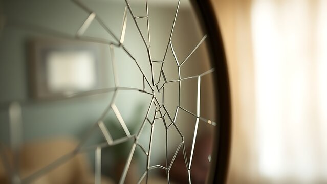 tennessine. Cracked mirror with a distorted reflection and broken surface texture. wellbeing guides, coaching materials, designed for coaching and self-improvement content, used by account managers.