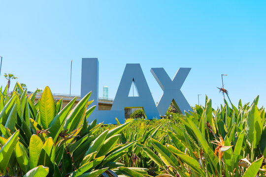 Los Angeles, California - April 8, 2024: LAX Airport Signage Amidst Verdant Greenery
