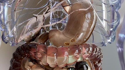 Human Stomach Anatomy Digestion, concept of the intestine, From the mouth to the intestines, laxative, traitement of constipation, esophagus, swallowing and the digestion of food, 3D reander