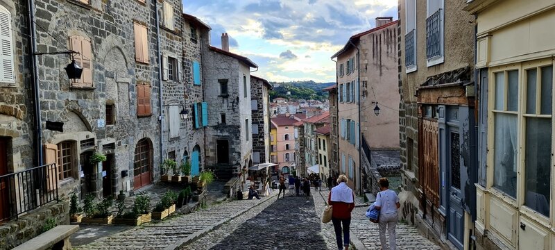 Medieval street of the old town of le Puy en Velay (Auvergne, France) with colorful facades