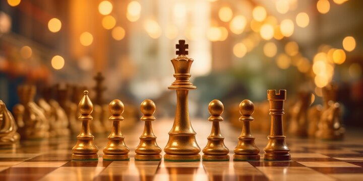 King chess standing on chess board. Business planning, strategy and leadership concept. Generative AI