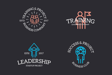 Set of retro vintage human resources, teamwork, customer support, company security, success logo or insignia, emblems, labels and badges and other branding objects. Vector line style