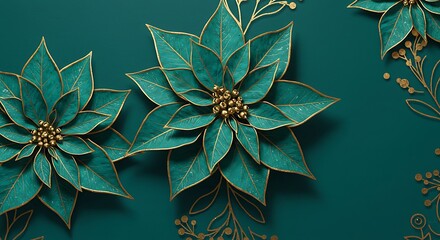 Elegant Teal Poinsettia with Gold Accents Floral Holiday Background Design