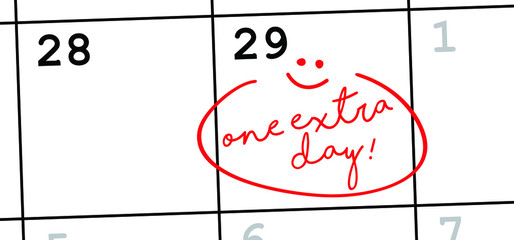 Happy leap day or leap year slogan. Calendar page February 29. Today is one extra day. Vector