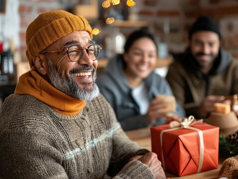 Grandmother and granddaughter share joyful moments as they explore photo album at kitchen table