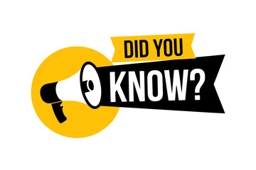 Interesting facts Did you know banner with white megaphone on yellow circle, isolated on transparent background