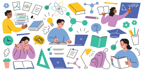 Back to school themed icon set with education and learning elements