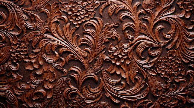 an ornamental Abstract Tooled leather, Horizontal background, Ornamental designs, carved and engraved in leather. Ornamental art Abstrac-themed, photorealistic illustrations in JPG. generative ai