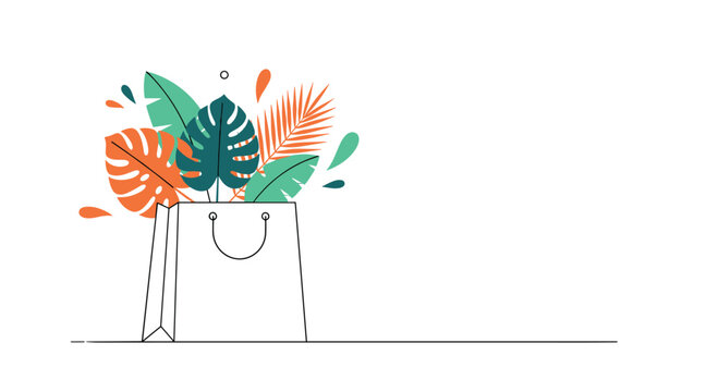 Green flying leaves on long white banner. Leaf falling. Wave foliage ornament. Vegan, eco, organic design element. Cosmetic pattern border. Fresh tea background. Beauty product. Vector illustration