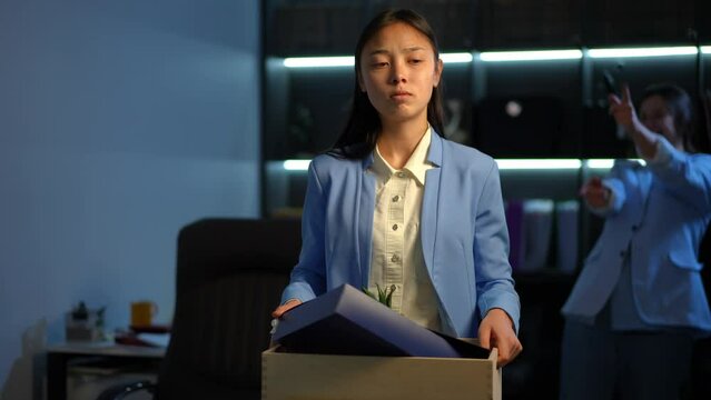 Upset business partners leaving office dissatisfied work failure throwing papers
