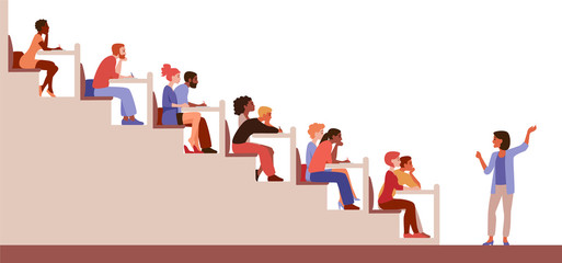 Male student taking notes during a university lecture, focused expression, professor in background giving a lesson, cozy classroom setting