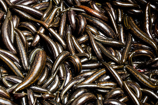 Many medical leeches for hirudotherapy on leech farm or laboratory