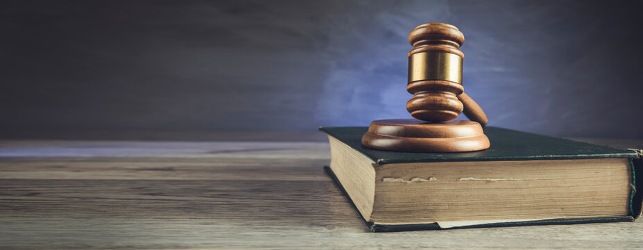 Gavel, stethoscope and caduceus sign on books background. Mediicine laws and legal, medical jurisprudence.