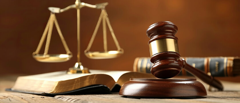 Gavel and scales of justice with legal documents