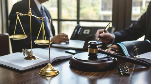 Professional lawyers consult with clients in the office on legal agreements, contracts and financial matters to ensure fairness and compliance with the law.