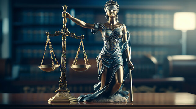 AI Generated: Close-up of Judge's Gavel on Wooden Block. Symbol of Power and Authority in the Judiciary System. Legal Documents and Scales of Justice. Courtroom Perspective. Generative AI.