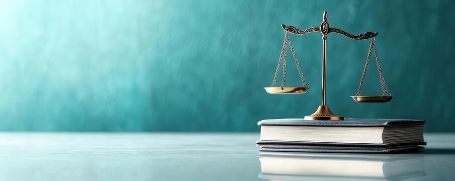 A balanced scale of justice in front of a law book, representing the delicate balance between legal authority and ethical judgment