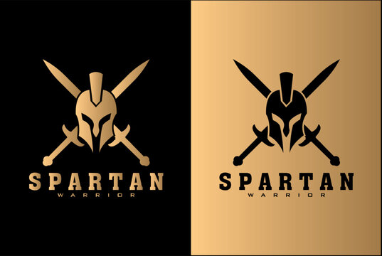 Spartan helmet logo with cross sword mark and distressed effect. Warrior logo spartan helmet