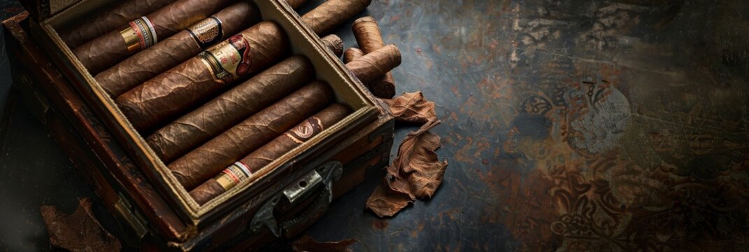 Luxury Cuba Cigars Mockup, Advertising Banner Smoking Tobacco Products and Cases Demonstration