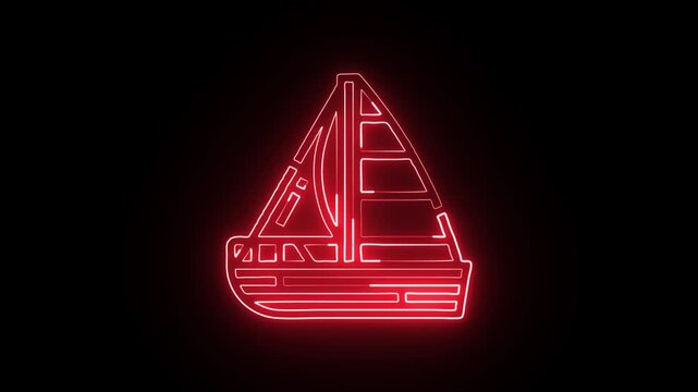 glowing neon sailboat icon isolated, black background, HD video motion graphic animation for sailing, leisure, and nautical adventures