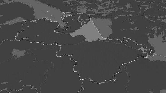 Leningrad, region with its capital, zoomed and extruded on the bilevel map of Russia in the conformal Stereographic projection. Animation 3D